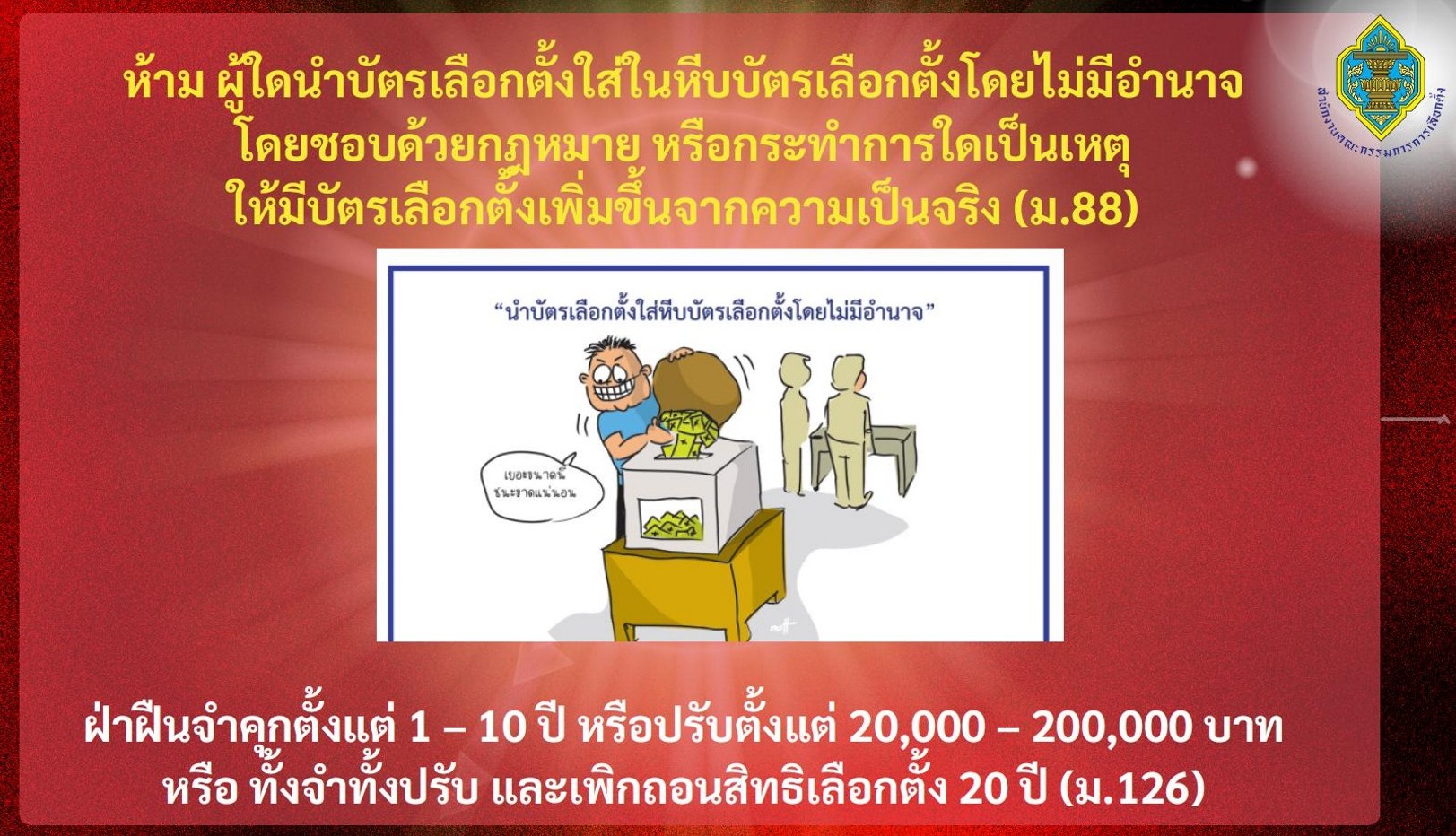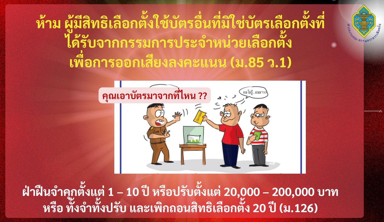 ► ออกไปใช้สิทธิเลือกตั้งทั้งที ต้องทำเครื่องหมายให้ถูกต้อง เพื่อไม่ให้ความตั้งใจสูญเปล่า ♦ ผู้มีสิทธิเลือกตั้งจะได้รับบัตรเลือกตั้งสองใบ (ยกเว้นกรณีผู้มีสิทธิเลือกตั้งเลือกได้เฉพาะนายกฯ) บัตรเลือกตั้ง ► นายกเทศมนตรี สีเหลืองทอง ทำเครื่องหมายกากบาท X ได้หนึ่งเบอร์ ► บัตรเลือกตั้งสมาชิกสภาเทศบาล สีเขียว ทำเครื่องหมายกากบาท X ได้ไม่เกิน 6 เบอร์ (หากทำเครื่องหมายเกินจะเป็นบัตรเสีย) หรือทำเครื่องหมาย X ในช่องไม่ประสงค์ลงคะแนน หากไม่ประสงค์เลือกผู้สมัครใด ♦ มีสิทธิต้องใช้ ร่วมใจเลือกตั้ง อย่างโปร่งใส วันอาทิตย์ที่ 29 มีนาคม 2569 เวลา 08.00 - 17.00 น. อย่าลืมไปใช้สิทธิเลือกตั้ง ณ หน่วยเลือกตั้งที่มีรายชื่อ ►สอบถามรายละเอียดเพิ่มเติมได้ที่ สำนักงานคณะกรรมการการเลือกตั้งประจำจังหวัดเพชรบุรี โทร. 032 - 473730 - 3 หรือ บริการสายด่วน 1444 , ศูนย์อำนวยการการเลือกตั้งประจำเทศบาลตำบลหนองโสน อำเภอเมืองเพชรบุรี จังหวัดเพชรบุรี โทร.032 – 400052