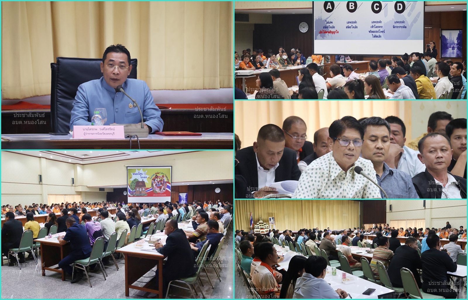 ► นำเสนอ "หนองโสนโมเดล" ร่วมการประชุมผู้บริหารองค์กรปกครองส่วนท้องถิ่น จังหวัดเพชรบุรี ครั้งที่ 1/2568 วันที่ 10 กันยายน 2568 นายยุทธนา เมืองเล็ก นายก อบต.หนองโสน พร้อมด้วย นายศักดิ์ศรี ลาภประสิทธิ์ รองนายก อบต.หนองโสน / นายวัชรพงษ์ พุ่มชื่น และ นายวชิระ สายจันทร์ ผู้ประสานงานของศูนย์วิชาการสารเสพติด มหาวิทยาลัยเชียงใหม่ ประชุมร่วมกับผู้บริหารองค์กรปกครองส่วนท้องถิ่น และหัวหน้าส่วนราชการหน่วยงานที่เกี่ยวข้อง โดยมี นายไตรภพ วงศ์ไตรรัตน์ ผู้ว่าราชการจังหวัดเพชรบุรี เป็นประธานในการประชุมฯ ณ ห้องประชุมพริบพรี ชั้น 2 ศาลากลางจังหวัดเพชรบุรี โดยมีส่วนราชการที่เกี่ยวข้องเข้าร่วมอย่างพร้อมเพรียง โดย นายยุทธนา เมืองเล็ก นายก อบต.หนองโสน ได้นำ "หนองโสนโมเดล" วิธีการสร้างสรรค์ทำงานแบบบูรณาการร่วมกันระหว่างหน่วยงานราชการและคนในชุมชน สร้างเครือข่ายที่เข้มแข็ง ในการแก้ไขปัญหายาเสพติดด้วยการบำบัด รายงานผลการดำเนินให้ท่านผู้ว่าราชการจังหวัดเพชรบุรีและหน่วยงานที่เกี่ยวข้องทราบ เพื่อร่วมขับเคลื่อนในการแก้ไขปัญหายาเสพติดอย่างครบวงจร ทั้งการปราบปราม การบำบัดฟื้นฟู และการป้องกันผู้เสพรายใหม่ เพื่อสร้างสังคมที่ปลอดภัย